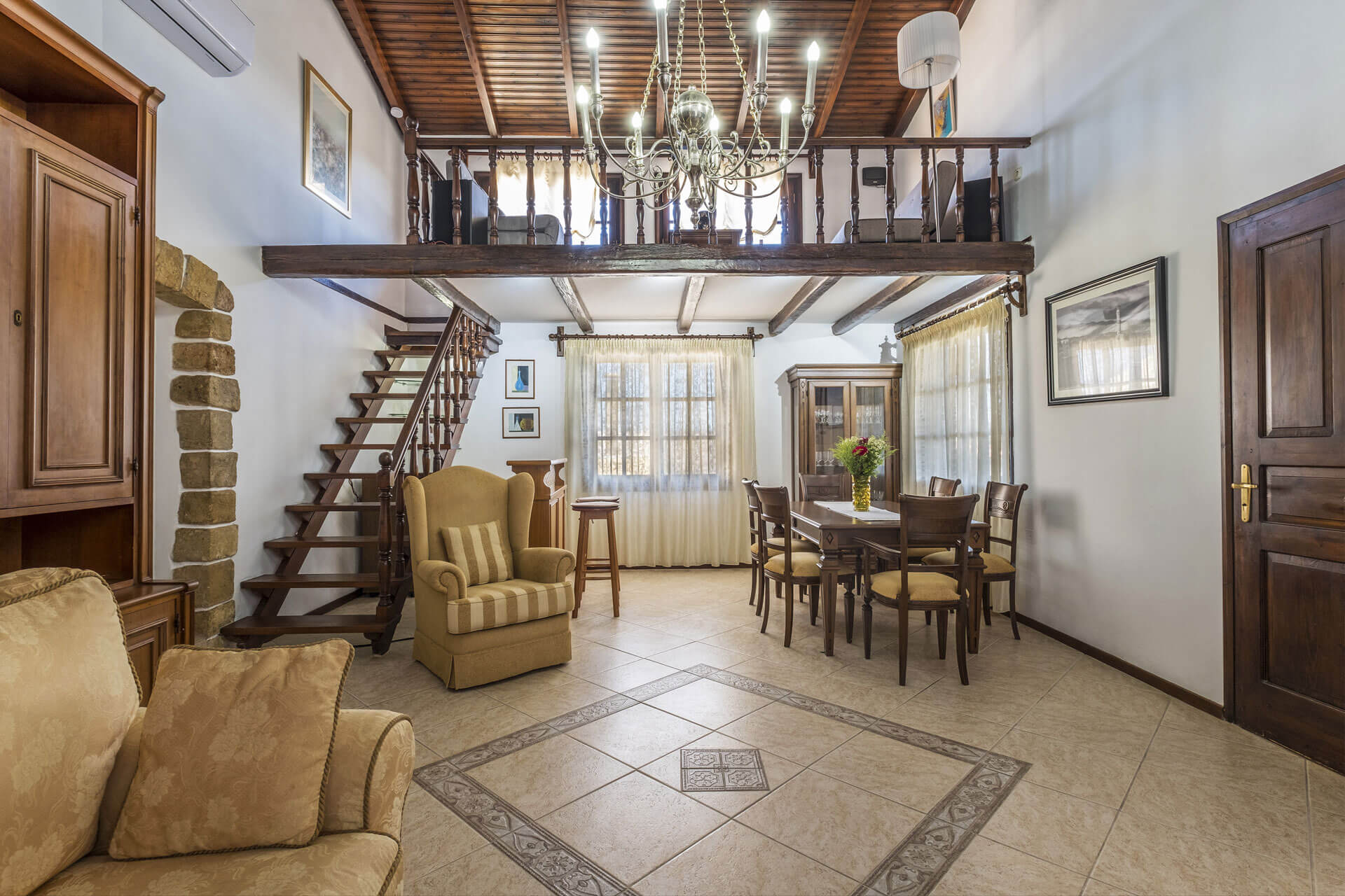 You may open the outer gate and park the car at the designated parking spot. A stairway leads to the front door, where the whole upper floor, its rooms and facilities are completely private, as well as the balcony and the veranda. There is also shared access to the yard and the garden.